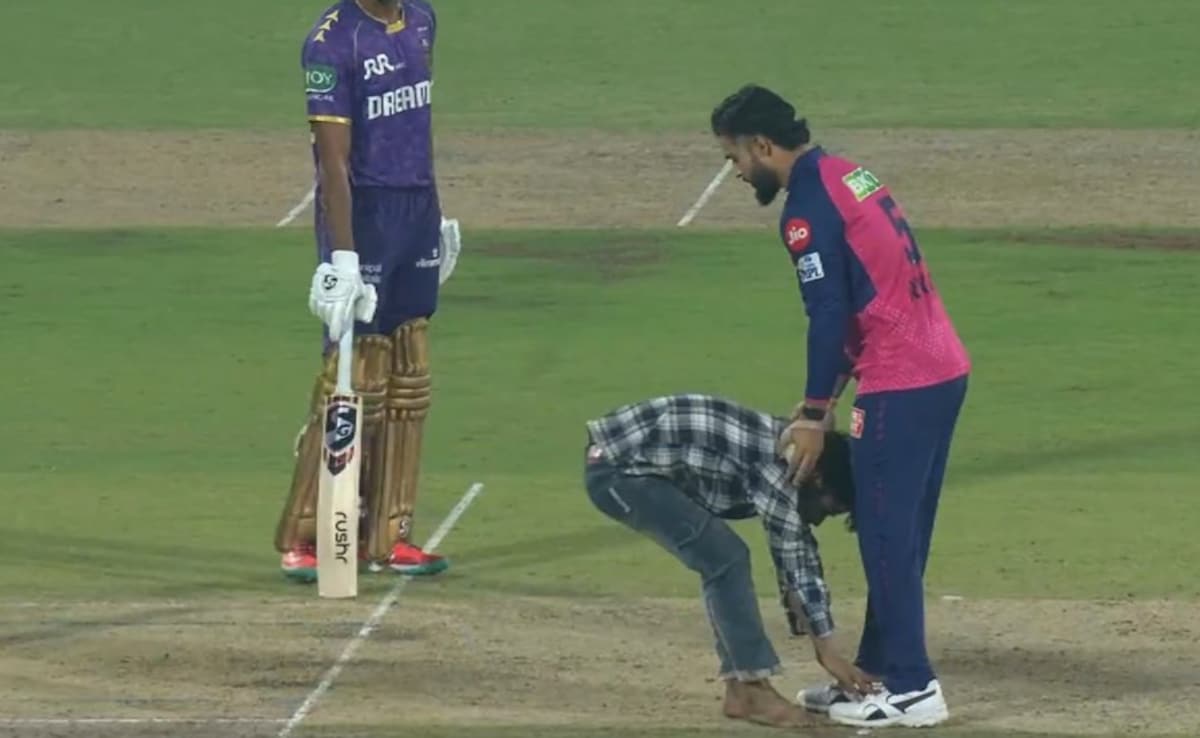 బుధవారం గువహతిలో కోల్కతా నైట్ రైడర్స్తో జరిగిన ఐపిఎల్ 2025 మ్యాచ్ సందర్భంగా రాజస్థాన్ రాయల్స్ స్టాండ్-ఇన్ కెప్టెన్ రియాన్ పారాగ్ను కలవడానికి ఒక అభిమాని పిచ్ను దాడి చేశాడు. పారాగ్ తన own రిలో జట్టును కెప్టెన్ చేస్తున్నందున ఇది ఒక ప్రత్యేక సందర్భం మరియు అతను హాజరైన ప్రేక్షకుల నుండి ఆనాటి పెద్ద ఉత్సాహాన్ని కూడా అందుకున్నాడు. కెకెఆర్ ఇన్నింగ్స్ సమయంలో, ఒక అభిమాని భద్రతను ఉల్లంఘించి, పారాగ్ పాదాలను తాకి అతనిని కౌగిలించుకోవడానికి మైదానంలో పరిగెత్తాడు. పారాగ్ సంజ్ఞతో కొంచెం ఆశ్చర్యపోయాడు మరియు ఈ సంఘటన విచారణలో కొంచెం ఆలస్యం కావడానికి దారితీసినప్పటికీ, అభిమానిని త్వరగా భద్రతా సిబ్బంది మైదానం నుండి బయటకు తీసుకువెళ్లారు.