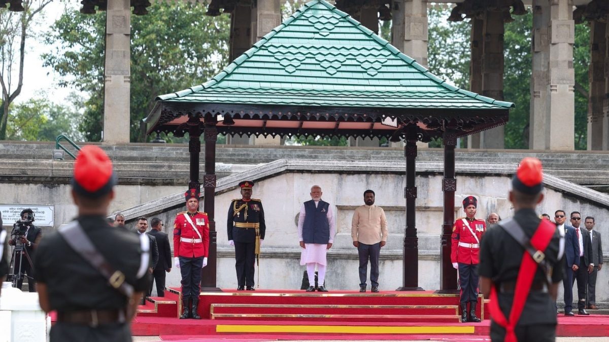 ప్రస్తుతం శ్రీలంక పర్యటనలో ఉన్న పిఎం మోడీని గ్రాండ్ సెరిమోనియల్ వేదిక వద్ద శ్రీలంక అధ్యక్షుడు అనురా కుమారకు అందుకున్నారు. స్వాగతం ప్రాంతీయ సహకారం మరియు వేగంగా ట్రాకింగ్ ఉమ్మడి అభివృద్ధి ప్రాజెక్టులను ప్రోత్సహించడంపై దృష్టి సారించిన సందర్శన ప్రారంభమైంది.