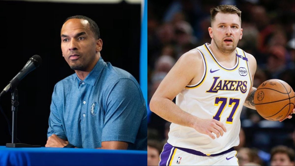 మావెరిక్స్ యొక్క GM నికో హారిసన్ మరియు లేకర్స్ లుకా డాన్సిక్ (x)