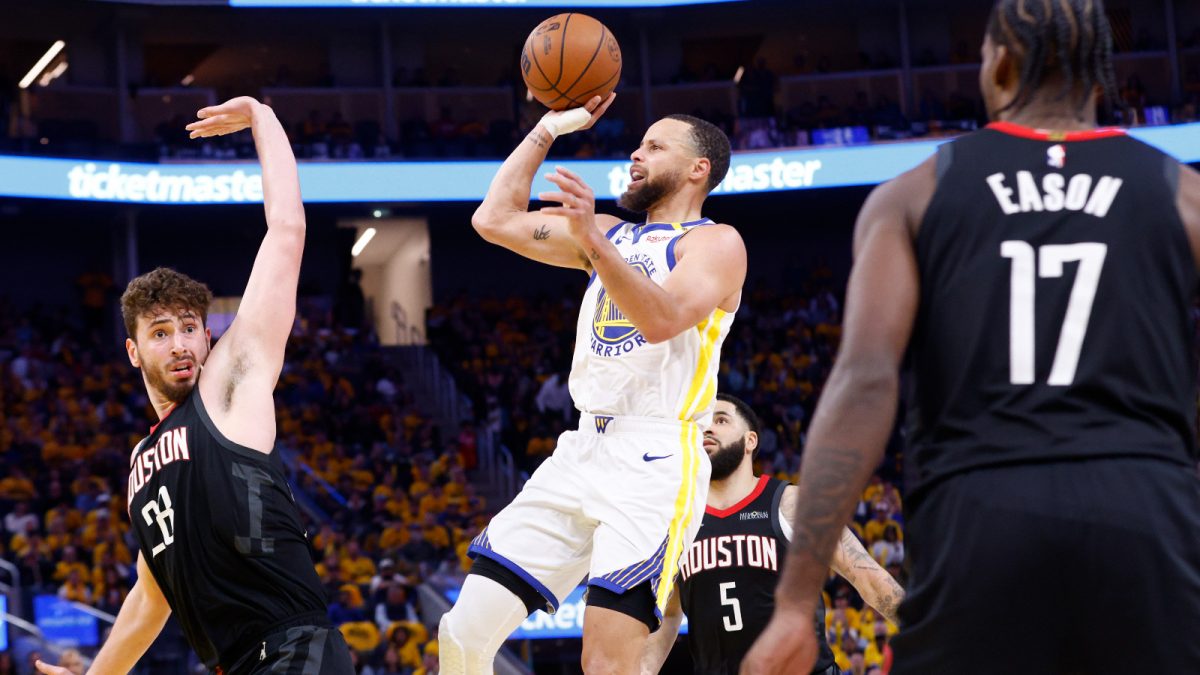 స్టీఫెన్ కర్రీ చివరికి తన షూటింగ్ గాడిని కనుగొన్నాడు, హ్యూస్టన్ అతనిని ఆపడానికి అన్నింటినీ ప్రయత్నించాడు, 36 పాయింట్లు, తొమ్మిది అసిస్ట్లు మరియు ఏడు రీబౌండ్లతో ముగించాడు, గోల్డెన్ స్టేట్ వారియర్స్ రాకెట్స్ 104-93తో శనివారం రాత్రి జిమ్మీ బట్లర్ లేకుండా వారి మొదటి రౌండ్ ప్లేఆఫ్ సిరీస్లో 2-1 ఆధిక్యంలోకి వచ్చాడు.