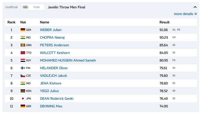 చోప్రా తన కెరీర్లో మొట్టమొదటిసారిగా 90 మీటర్ల మార్కును విచ్ఛిన్నం చేశాడు, కాని జర్మన్ వెబెర్ భారతీయుడిని అప్స్టేజ్ చేయడంతో అతన్ని దోహా డైమండ్ లీగ్ స్టాండింగ్స్పై ఉంచడం సరిపోలేదు.