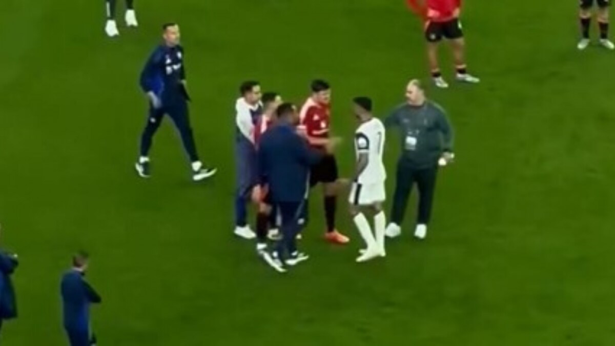 ఇద్దరు ఫుట్బాల్ క్రీడాకారులు వారి ఆటల వాగ్వాదాల క్షణాల్లో నేరం చేశారు, టోటెన్హామ్ విజయంలో చివరి విజిల్ తరువాత మండుతున్న దృశ్యాలకు దారితీసింది.