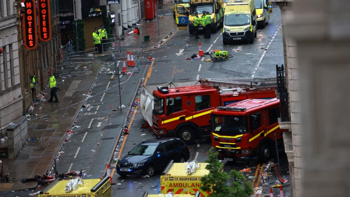 లివర్పూల్లో జరిగిన విక్టరీ పరేడ్ సందర్భంగా బహుళ వ్యక్తులు కారును hit ీకొనడంతో ఘటనా స్థలంలో అత్యవసర సేవలు. ((రాయిటర్స్