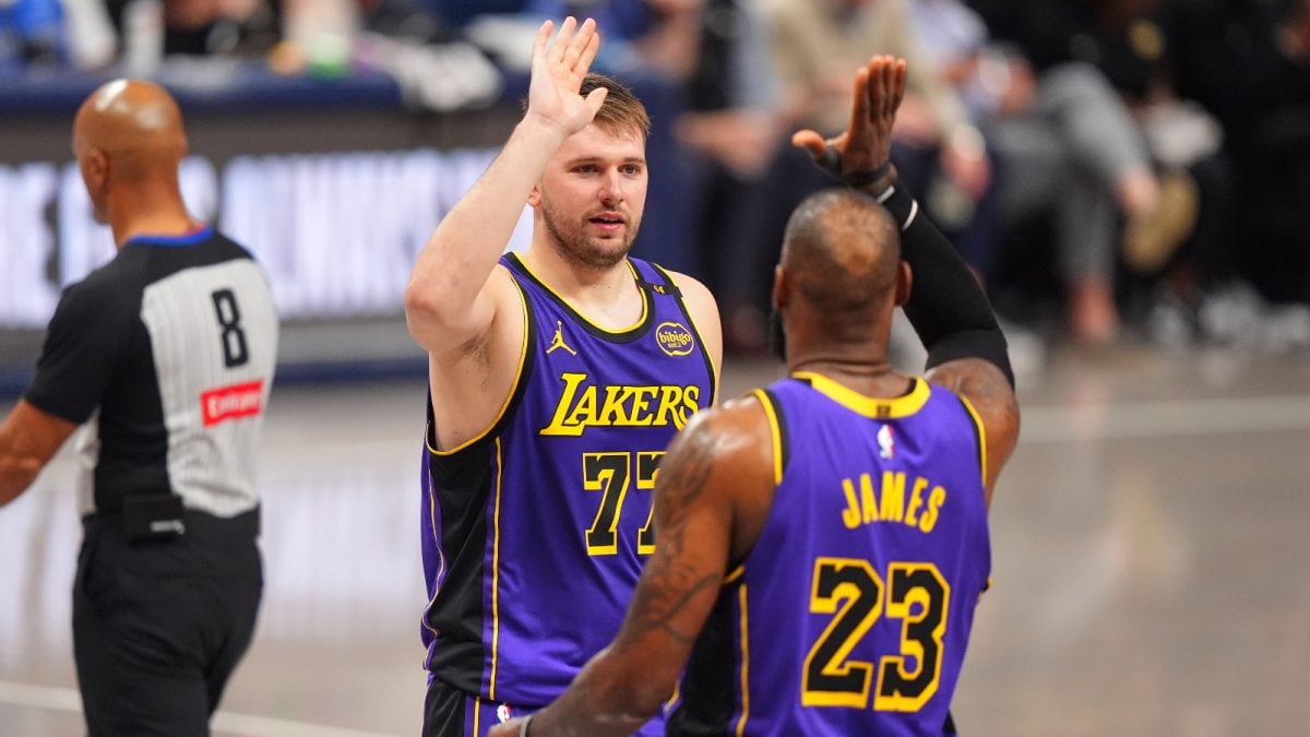 లా లేకర్స్ (AP) కోసం లుకా డాన్సిక్ మరియు లెబ్రాన్ జేమ్స్