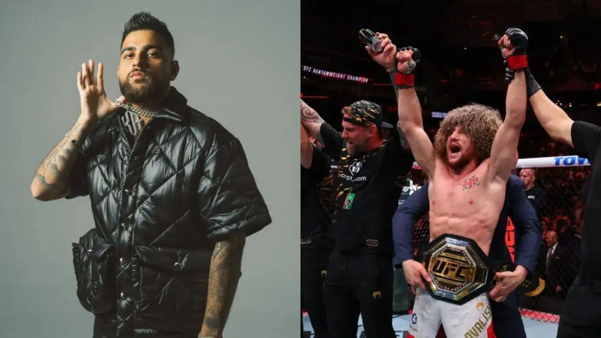 కరణ్ ఆజ్లా (ఎడమ) లో యుఎఫ్సి ఛాంపియన్ మెరాబ్ ఉంటుంది. (పిక్చర్ క్రెడిట్: x)