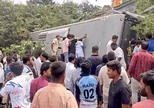 ఇకమరో ప్రైవేటు ట్రావెల్స్ బస్సు పెద్ద అంబర్ పేట ఔటర్ రింగ్ రోడ్డుపై బోల్తాపడింది. ఈ సంఘటన శనివారం (అక్టోబర్ 26) ఉదయం జరిగింది. మియాపూర్ నుంచి గుంటూరు వెళ్తున్న న్యు గో ఎలక్ట్రిక్ బస్సు బోల్తా పడింది. ఈ ఘటనలో ఆరుగురు గాయపడ్డారు. ప్రమాదం జరిగిన సమయంలో బస్సులో 20 మంది ప్రయాణికులు ఉన్నారు. ఈ ప్రమాదంలో గాయపడిన వారిని సమీపంలోని ఆసుపత్రికి తరలించి చికిత్స అందించారు.