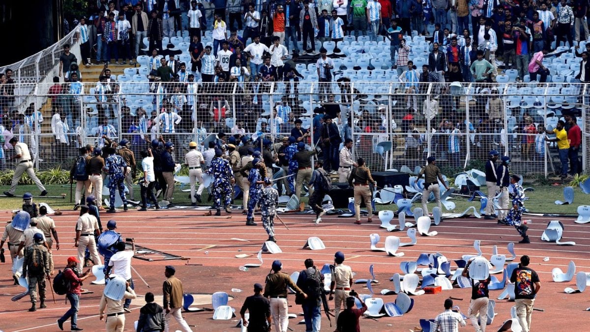 GOAT ఇండియా టూర్ 2025 సందర్భంగా అభిమానులు లియోనెల్ మెస్సీని స్పష్టంగా చూడకుండా తిరస్కరించడంతో సాల్ట్ లేక్ స్టేడియంలో గందరగోళం ఏర్పడింది. (X)