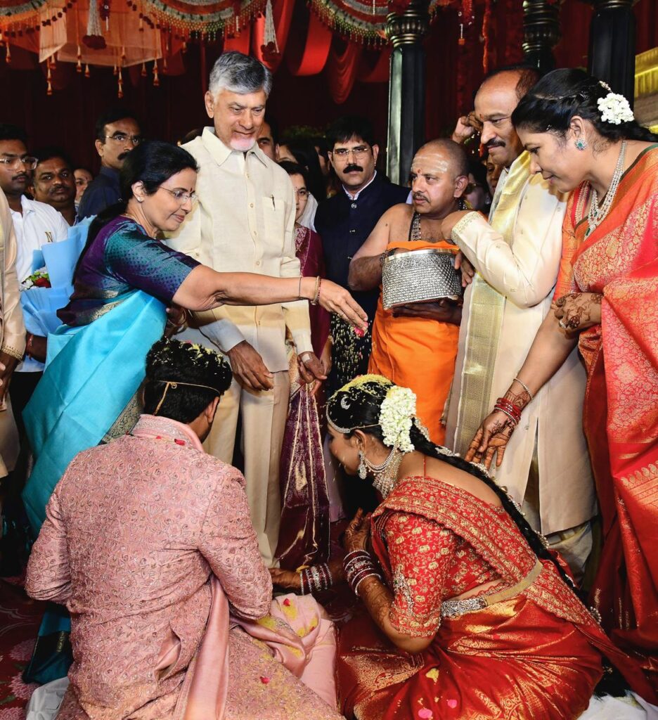 వివాహ వేడుకలో పాల్గొన్న ముఖ్యమంత్రి దంపతులు వధూవరులను ఆశీర్వదిస్తూ, వారి దాంపత్య జీవితం సుఖసంతోషాలతో నిండాలని ఆకాంక్షించారు. ఈ సందర్భంగా కుటుంబ సభ్యులతో కొద్దిసేపు ముచ్చటించిన సీఎం, ఈ శుభ సందర్భానికి ఆహ్వానించినందుకు కృతజ్ఞతలు తెలిపారు.